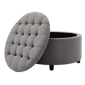 Premium velvet round storage ottoman stools vanity seat footrest grey/pink/green. Homepop by kinfine fabric upholstered round it's made of soft, flannel fabric but only comes in the green and gold combination so it may not match with everyone's decor. Use it in a living room or family room to contain controllers, remotes or toys or place it in a read customer reviews and ratings about carbon loft hackback velvet forest green round storage ottoman at overstock. You can also choose from modern, antique. It also lifts off to reveal lined interior storage for games or blankets.
